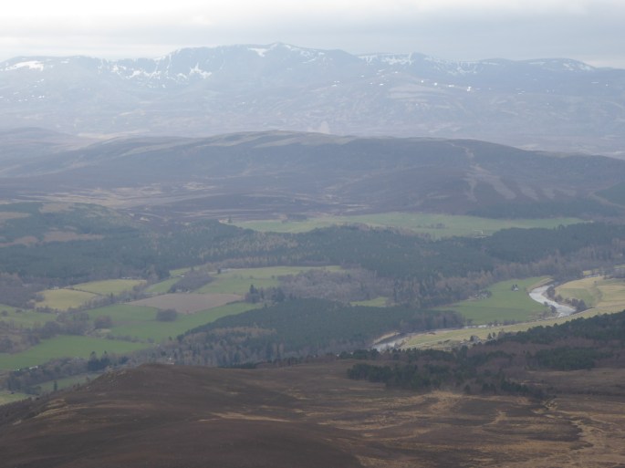 Recent days included a wander up Morven (871m) and a short, but fast ascent of Geallaig Hill (743m) from Braenaloin (both are hills near Ballater). Morven offered us stunning views of the surrounding springlike countryside, but the sunshine was deceptive: it was cold on the summit and most of my winter layers were required. Geallaig, a week later, proved to be equally as chilly, especially as the encroaching cold front complete with cloud and snow showers moved in to envelope the hill. The rapid change in conditions served to remind us just how raw the weather can still be in April. But the views (before we lost them) across to Deeside and Lochnagar beyond were superb.