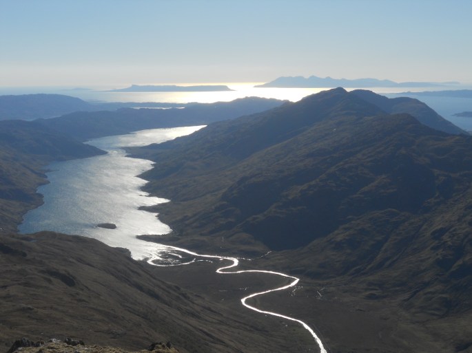 Some of my most intense memories come from days in the mountains. An elevated, different world, places that can’t be seen or imagined when you’re driving along the road through the glens. Days when time takes on different meaning, stretching itself out to the utmost while a vast number of experiences crowd their way into your memory. The landscape that imprints itself on your consciousness. And all this, regardless of the weather – whether it be battling with the wind to reach a summit, traipsing across extremely boggy ground with rain lashing at you, in the sensory deprived environment that constitutes a white-out, friendly white cumulus clouds creating a chequered shadow pattern over the world below you or a day of wall-to-wall sunshine and intense blue skies.