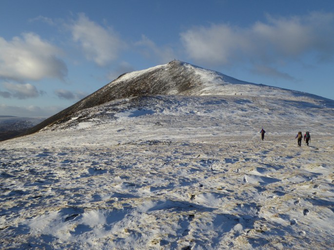 At higher levels there was a fairy-tale dusting of snow, while further up the wind had scoured the slopes, leaving exposed icy patches. The photos from the summit show a fair covering – a taste of things to come. A perfect winter mountain day with stunning visibility, a colourful sunset and a walk-out by the light of head torches.
