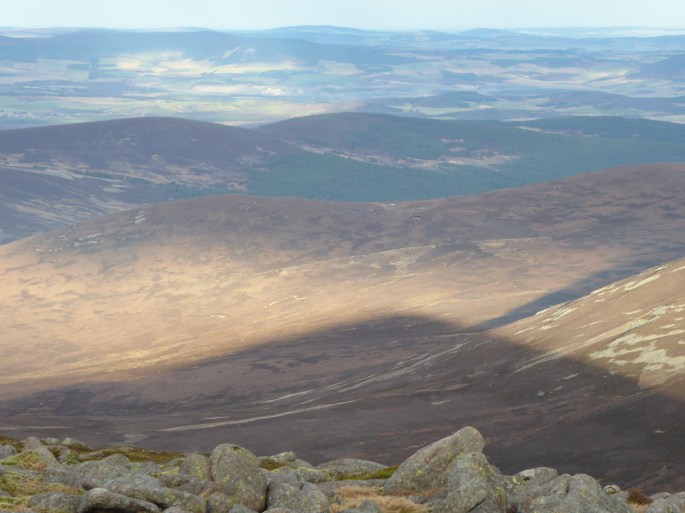 Featured photo: The shadow of Mount Keen cast on the landscape below
